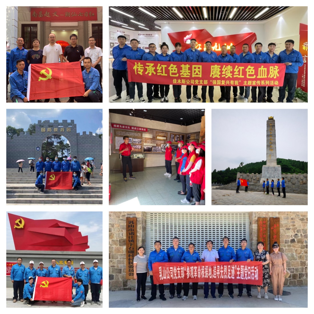 佳木斯公司党员来到佳木斯市九洲社区党史馆,追忆佳木斯地区党组织发展历程。宁河公司党员重走3.8公里“方舟路”,感受于方舟烈士“以己为舟济苍生”的爱国主义情怀。博白公司党员在玉林国防教育园接受爱国主义教育。蓟州公司、句容公司、汕头公司、乳山公司党员先后到当地的抗日战争纪念馆、新四军纪念馆、“八一南昌起义”纪念馆、马石山烈士陵园缅怀先烈。各支部党员通过参观红色教育基地,找寻初心,更加坚定了为美好生活环境贡献力量的决心。